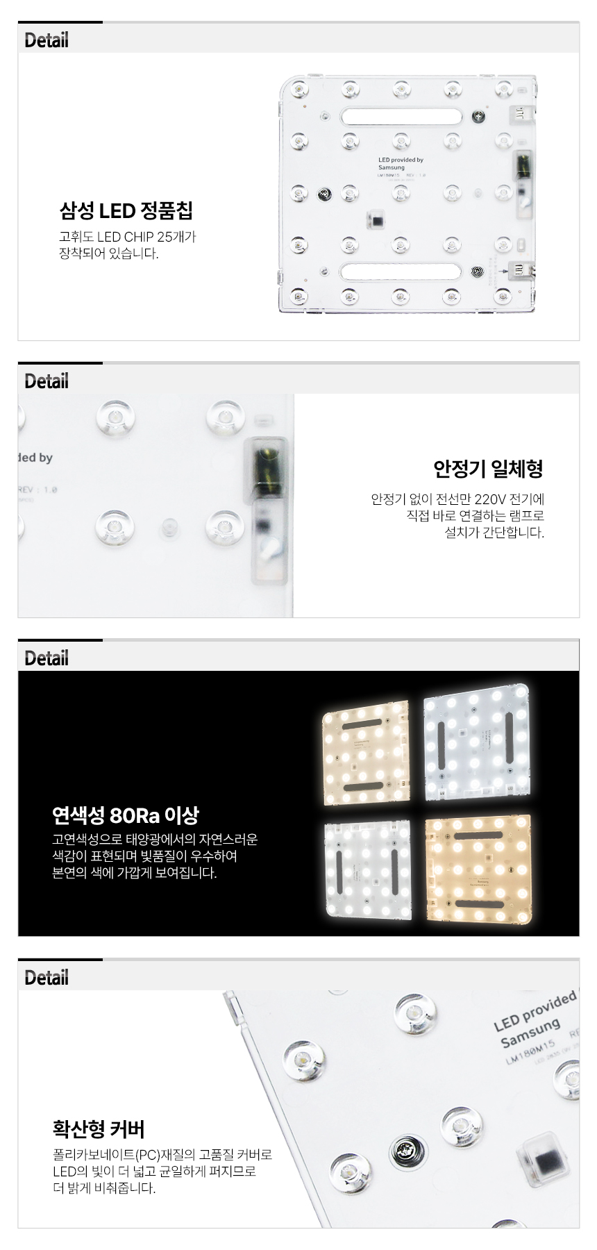 - 사각방등처럼 넓직한 등기구에 적합하여 용도에 맞게 추가 배치하여 사용가능