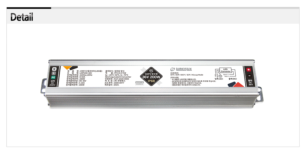 SMPS KS 방수 36V 200W (LMP200-36V)