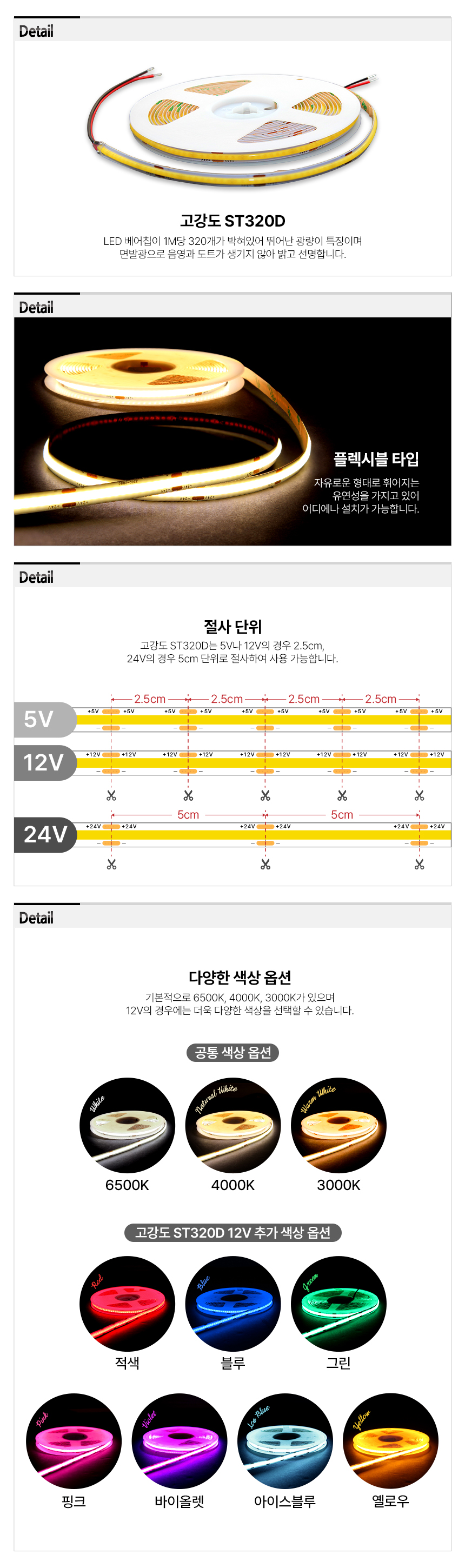 5V : 3000K, 4000K, 6500K