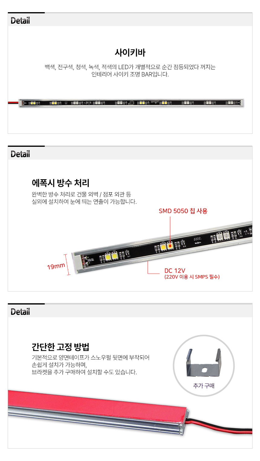 SMD 5050 / 백색 4EA, 전구색 4EA, 녹색 4EA, 청색 4EA, 적색 4EA (50cm 기준)